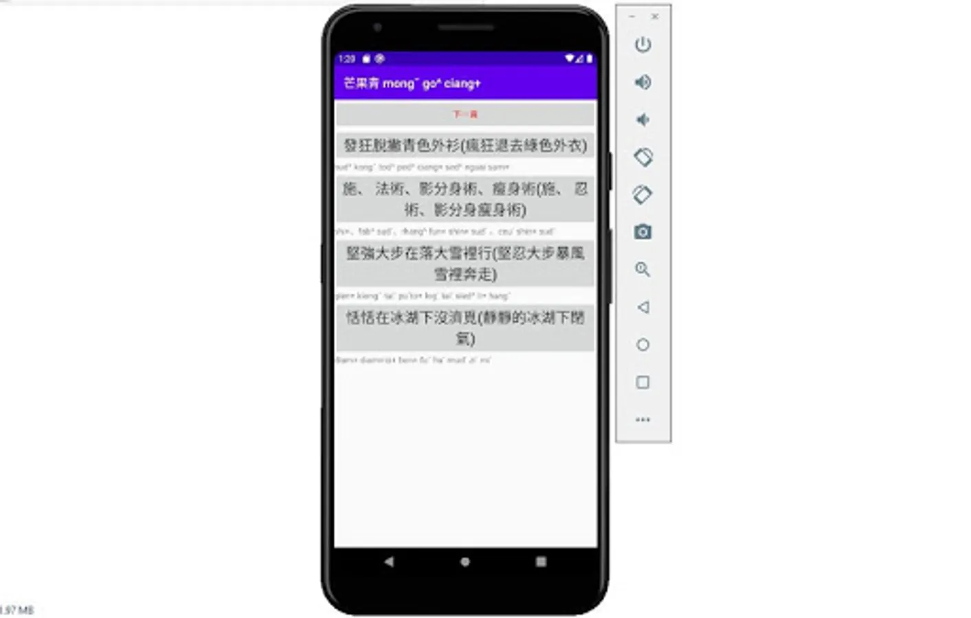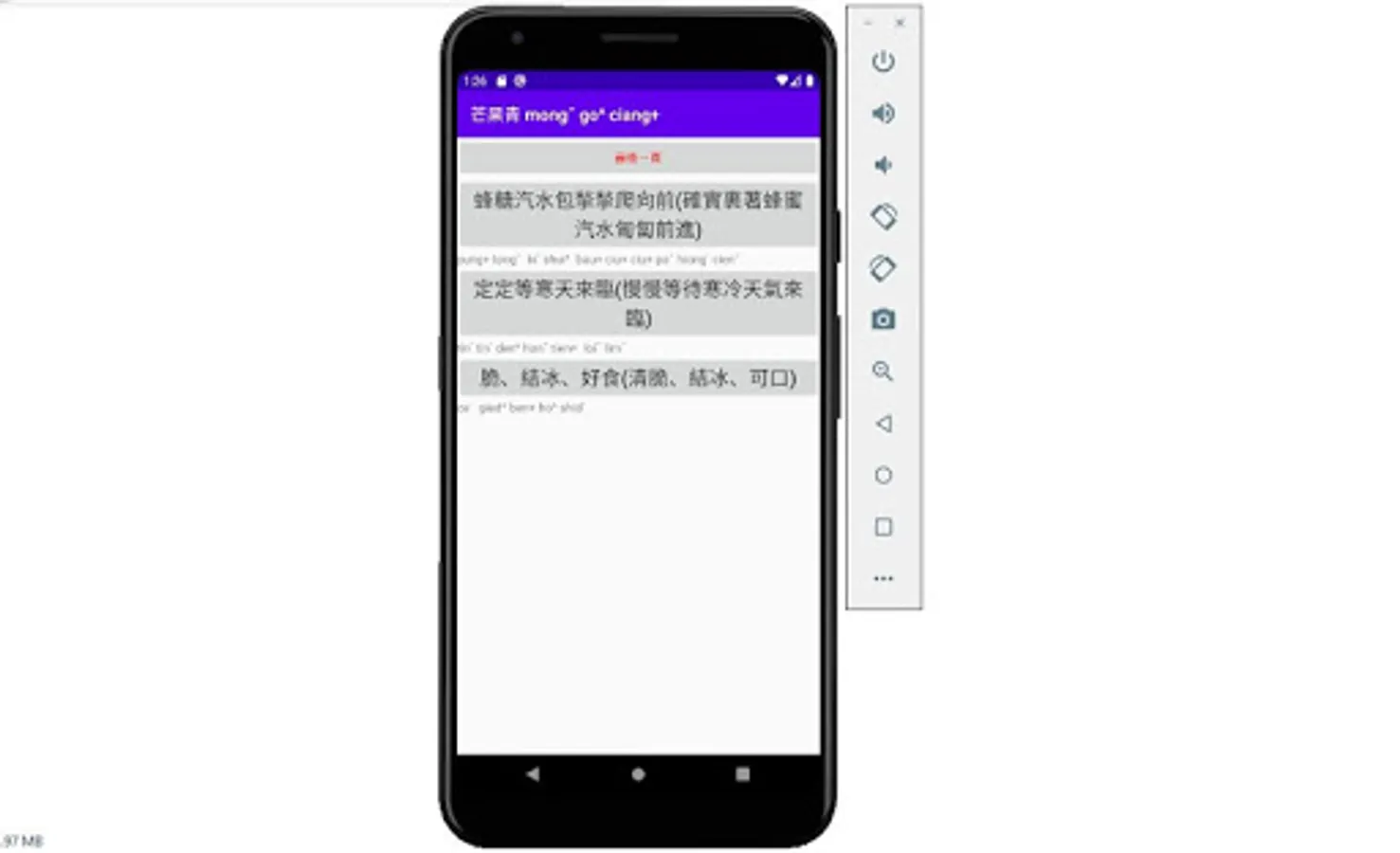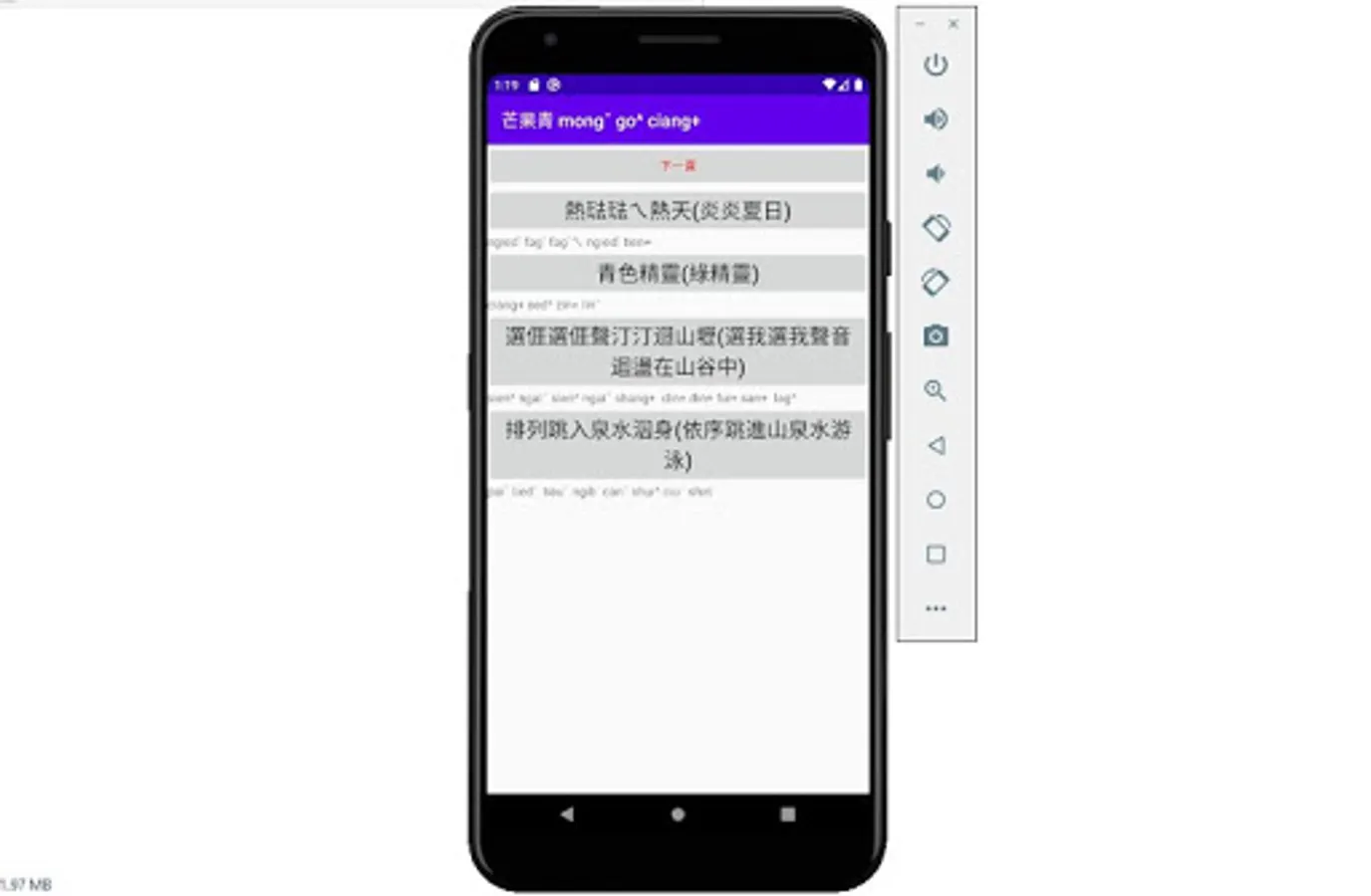 The new sound poems of Hakka dialect in Dapu dialect, as long as you press the gray button, there will be a Hakka dialect in Dapu dialect. If you press the button too fast, there will be no sound. As long as you restart the app, there will be a sound.