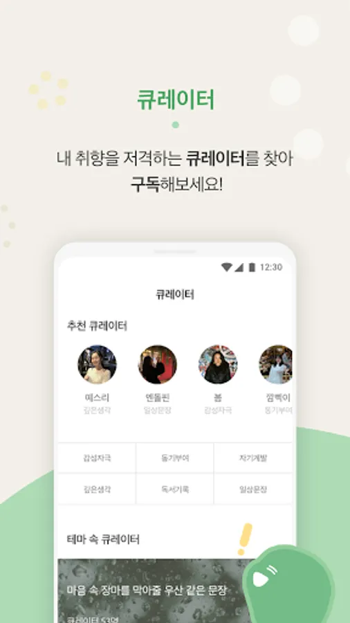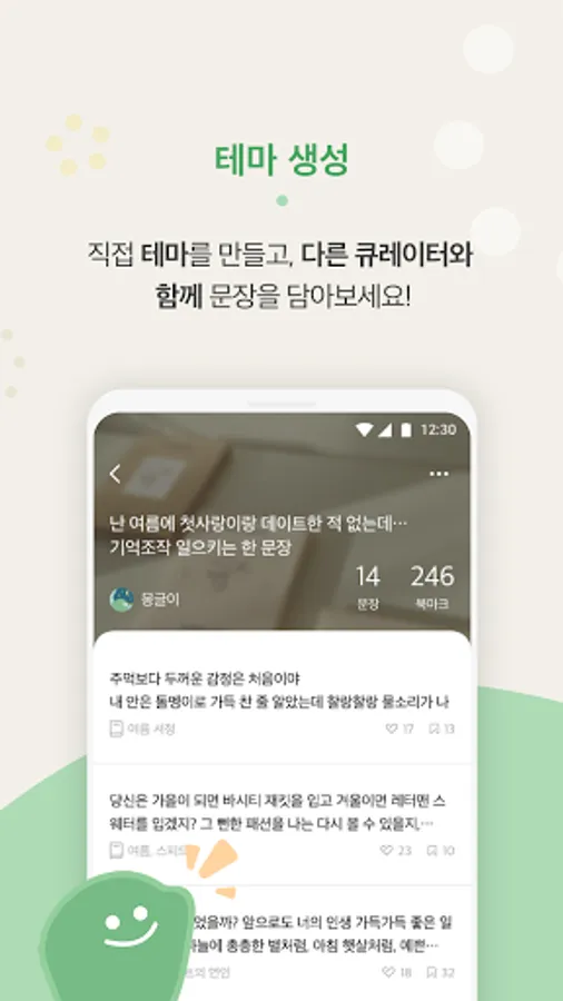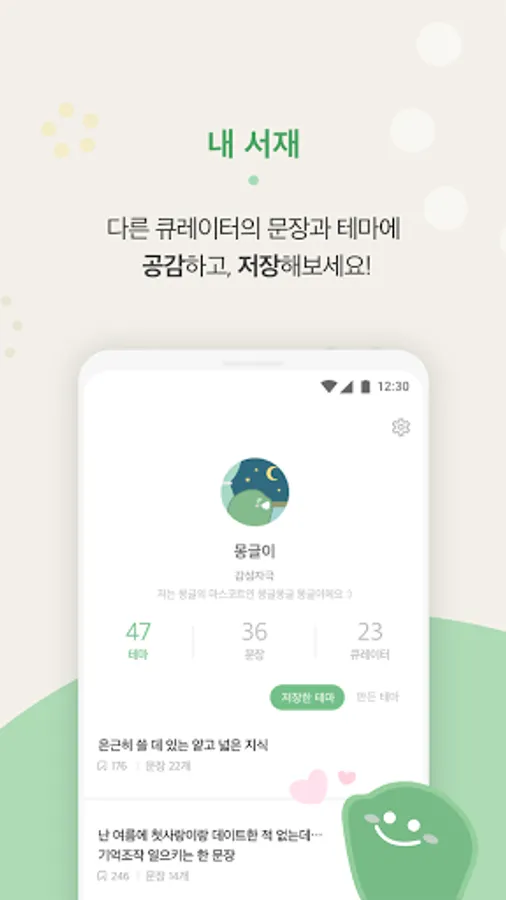 Mongle is a platform where people who believe in the power of a single sentence gather. Recommend and share sentences that fit the theme with the curators in Mongol.