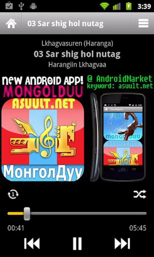 Mongolduu.com NextGen Mobile App is here to make it easy for the Mongolian music lovers around the world to enjoy their favorite music on their Android phones.