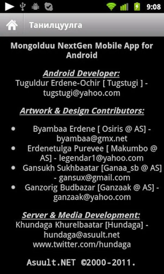 Asuult.net & Mongolduu.com вэб хуудас 11 жилийн ойгоо тэмдэглэж та бүхэнд энэхүү Mongolduu.com Mobile App-г бэлэглэж байна. Та өөрийн сэтгэлд таньд алтан дурсамж болон үлдсэн олон олон сайхан ардын болон хуучины дуу хөгжимөөс авахуулаад шинээр гарч ирж буй залуу дуучдын уран бүтээлийг одоогоор 9000+ гаруй нийт дуутай Монголын хамгийн том сан Mongolduu.com-с хялбарханаар олж сонсох боломжтой.