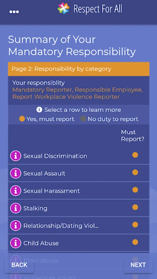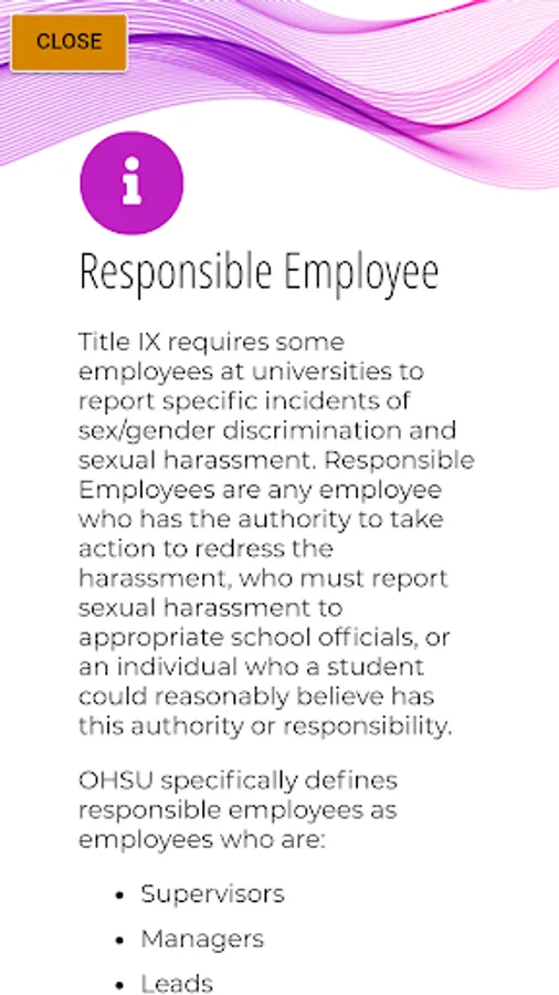 This app is designed for OHSU students, faculty, and staff in conjunction with the Respect for All training. Sexual misconduct can occur in many forms, including dating violence, stalking, harassment, or assault. This app will help define these and provide resources. In addition, it will help you understand your rights, options, and resources, as well as identify the responsibilities of OHSU students, faculty, and staff.