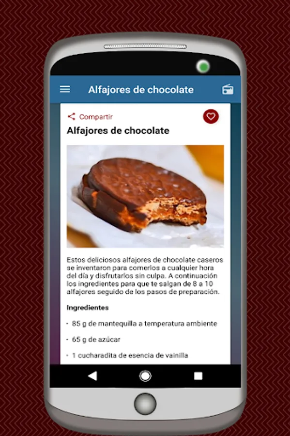 This free cake and dessert recipe app in Spanish will always be at hand whenever you need it
