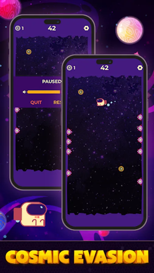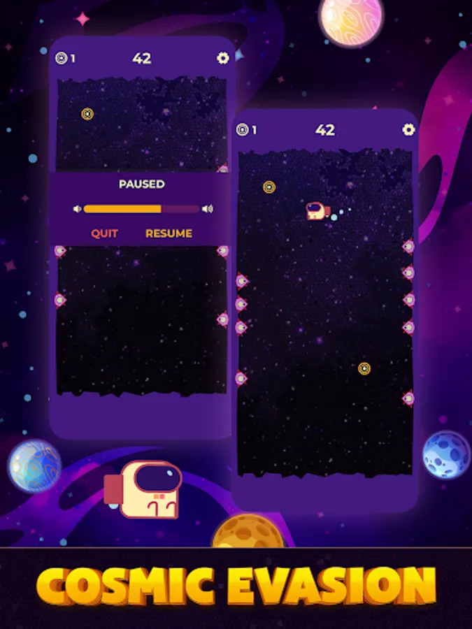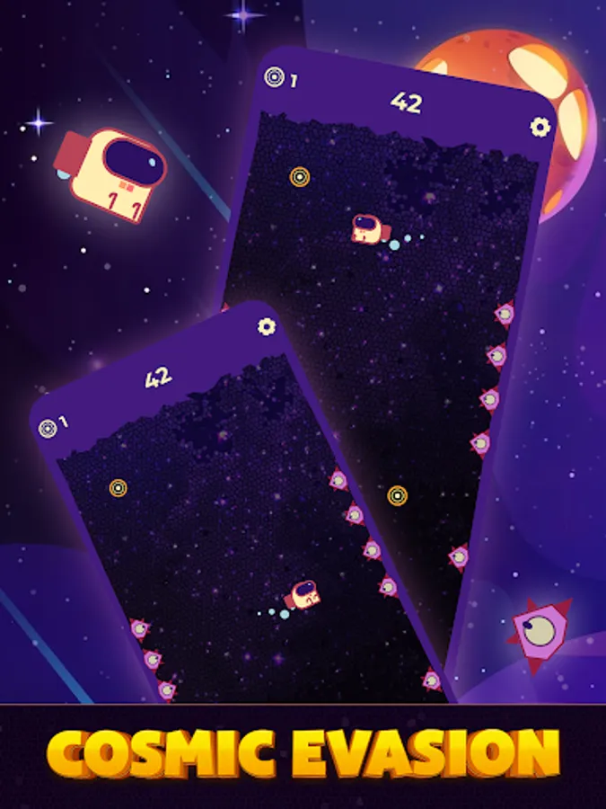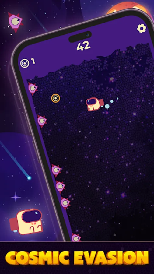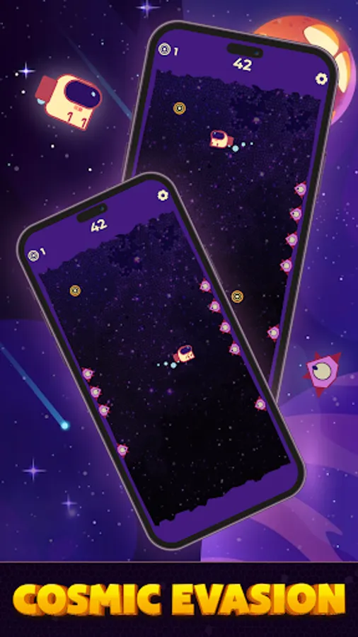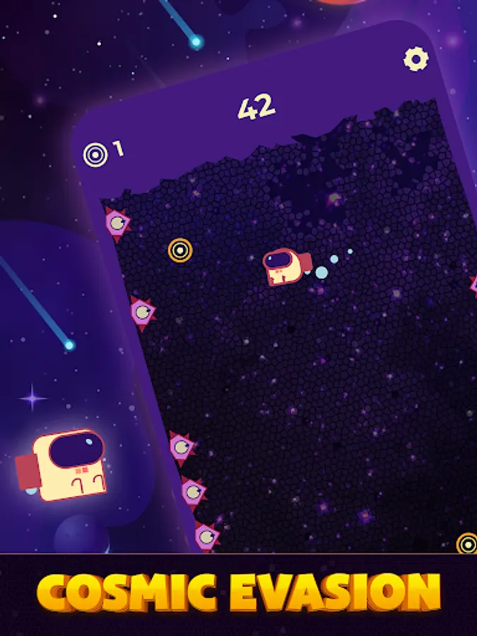 Trò chơi "Cosmic Evasion" là một trò chơi di động đơn giản nhưng cực kỳ gây cuốn và gây nghiện. Mục tiêu của trò chơi là giúp một con chim nhỏ bay qua các chướng ngại vật gai mà không chạm vào chúng.
