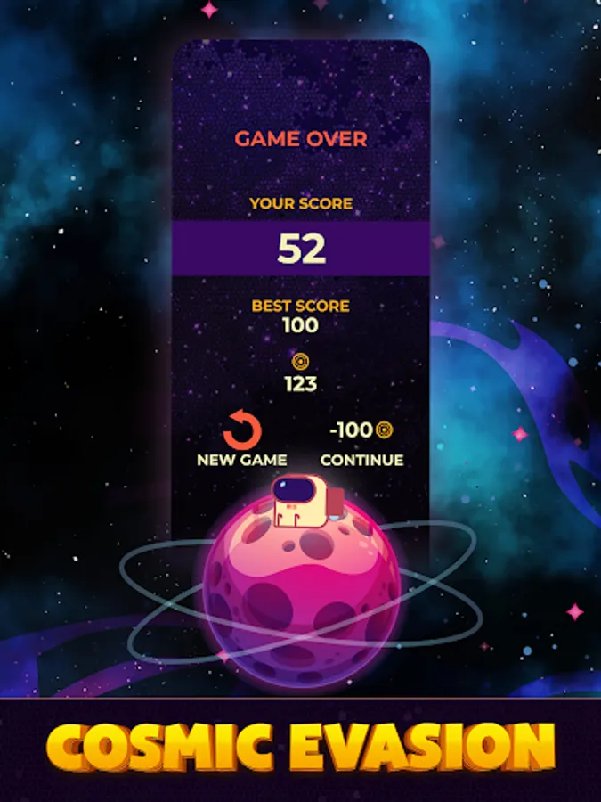 Sẵn lòng thử thách bản thân và giành điểm số cao nhất trong trò chơi này? Với giao diện đơn giản, âm nhạc vui nhộn và gameplay thú vị, trò chơi "Cosmic Evasion" đã trở thành một trong những trò chơi di động phổ biến và được yêu thích trên các nền tảng khác nhau. Hãy cùng nhảy vào thế giới đầy hứng khởi của "Cosmic Evasion" ngay bây giờ! dịch đúng nghĩa sang tiếng anh