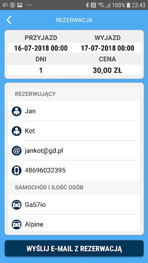 The application shows how you can reserve parking spaces online.