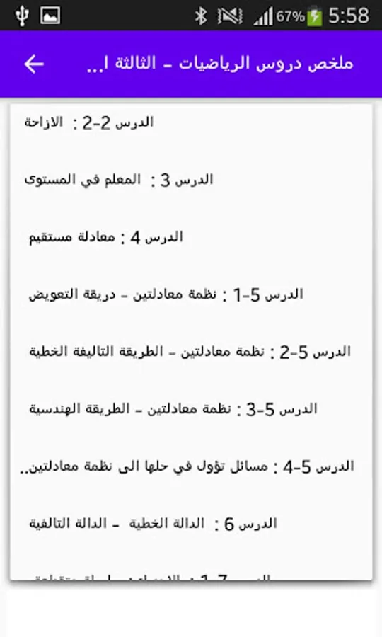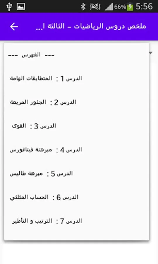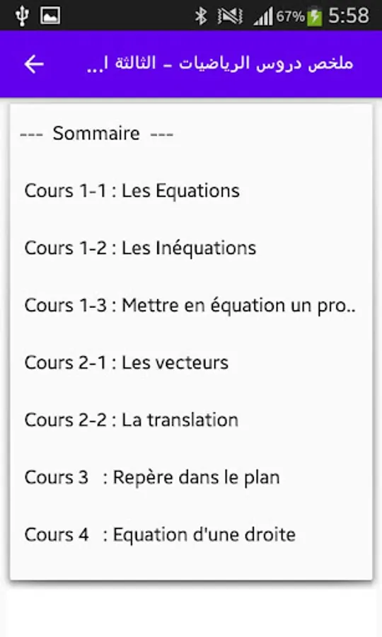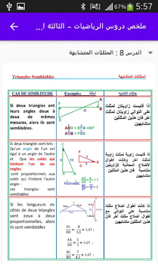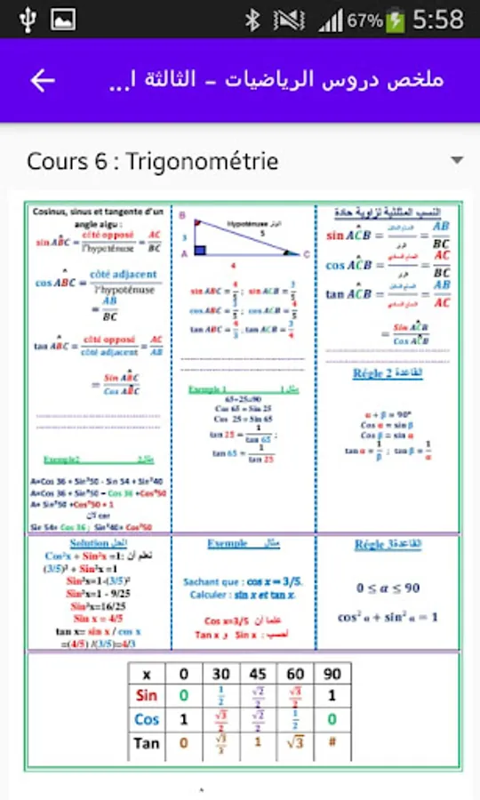 Summary of the third mathematics lessons, middle school, general, Arabic - French option