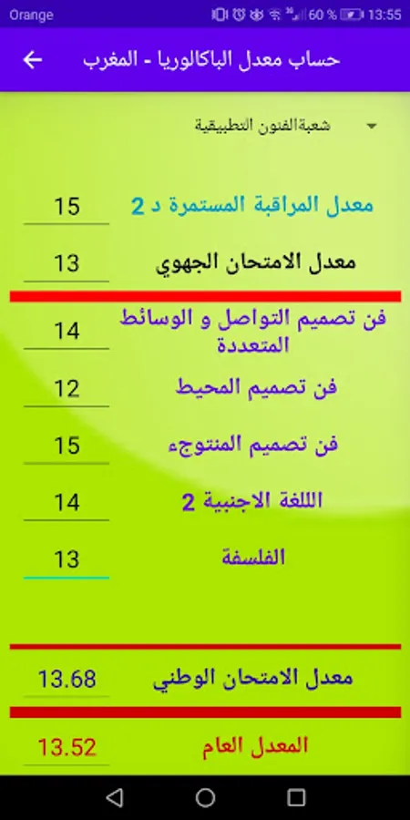 Calculating the baccalaureate rate based on the continuous monitoring rate for the first session, the second session for the first session, the regional exam and from the prediction of the national exam point