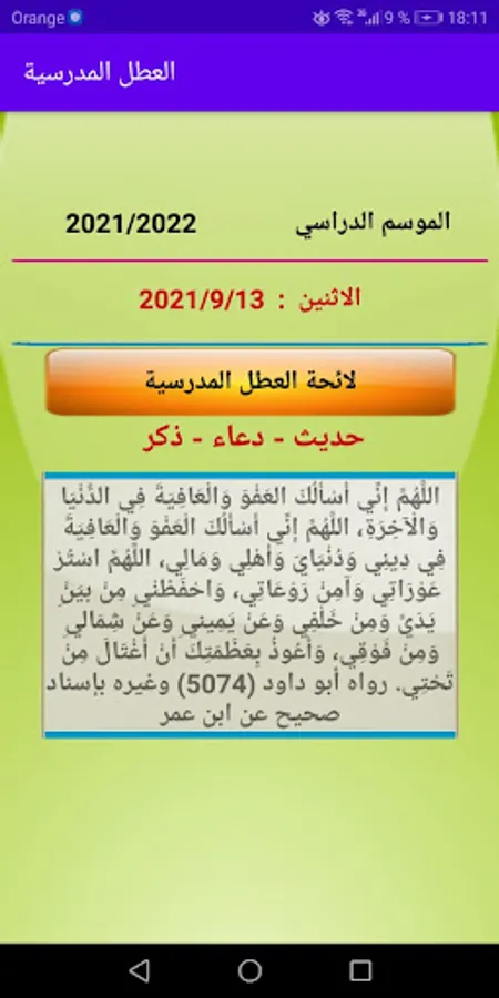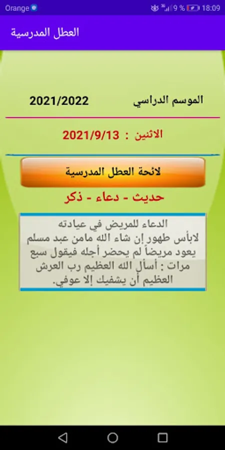 The appearance of a notice of the upcoming school holiday a week before it in the form of a message