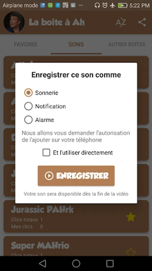 Make a long press on one of the sounds to save it as a notification, ringtone or alarm for your phone!