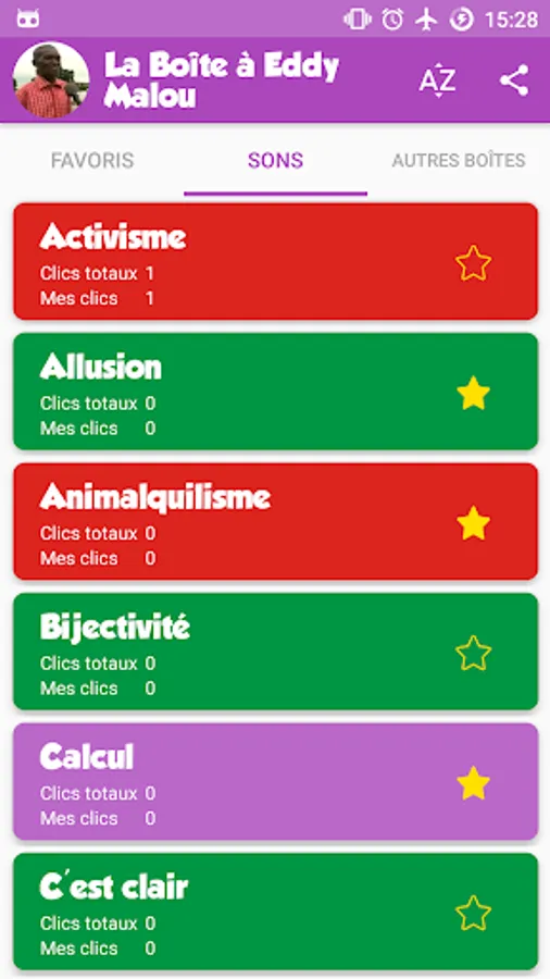 The sound box allows you to bookmark your favorite sounds to find them quickly. Download the app once and receive real-time sound updates. Your favorite sounds will be brought up in the rankings: click and see if your favorite sounds are also those of other users of the sound box!