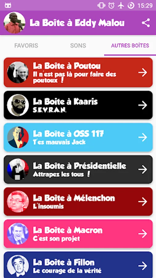 You can easily see all of Monirapps' sound boxes in the app. If you have a particular desire, do not hesitate to let us know by sending us an email to boitea@monirapps.com. We will do our best to add the boxes of your dreams!