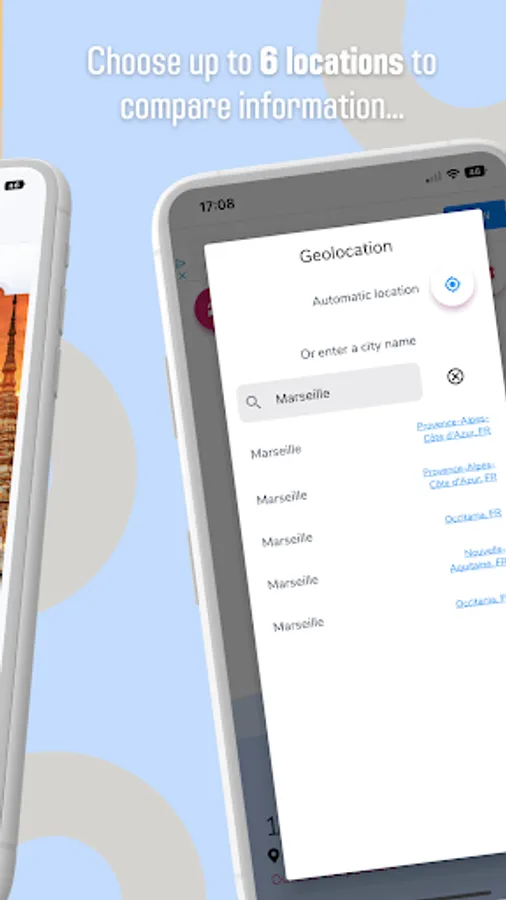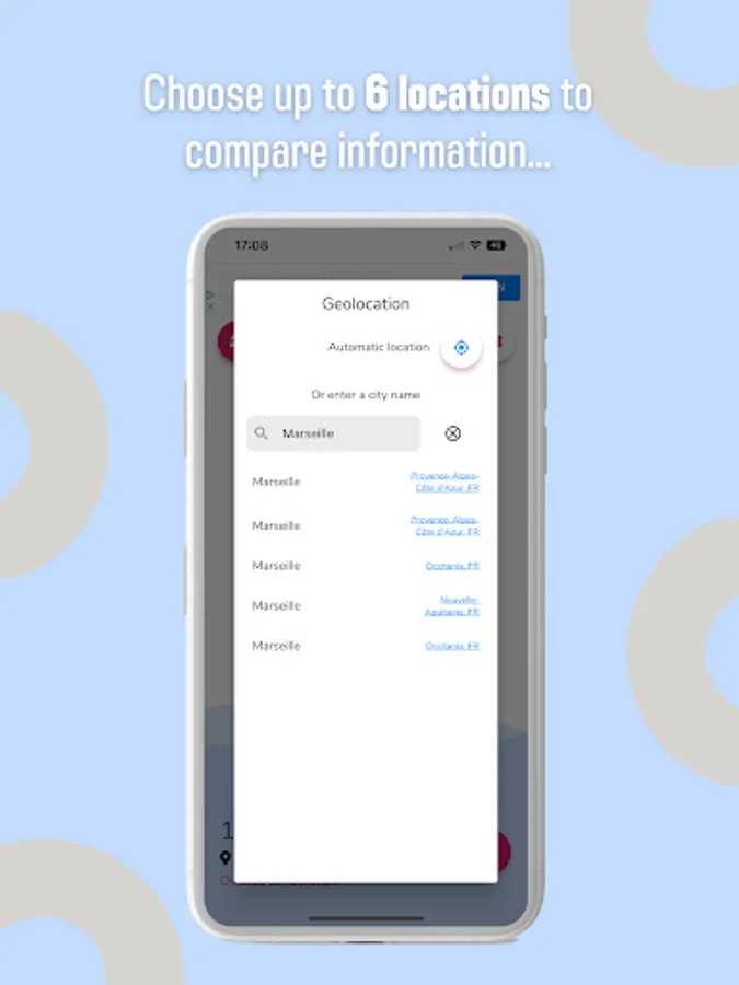 Use automatic geolocation to get a highly accurate outdoor air temperature of your current location, wherever you are. If you don't want to enable geolocation, you can also manually enter the city whose outdoor temperature you want to know.