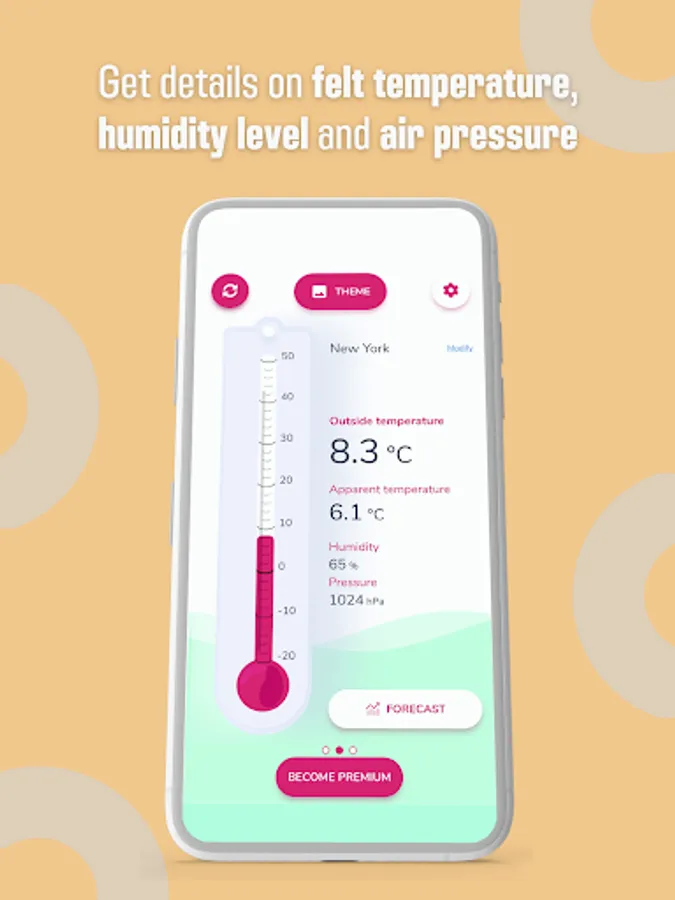 Get accurate weather data in real time, wherever you are, with the comprehensive and precise Thermometer ambient temperature measurement tool.