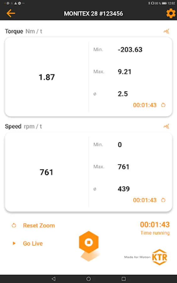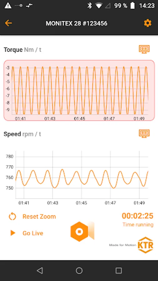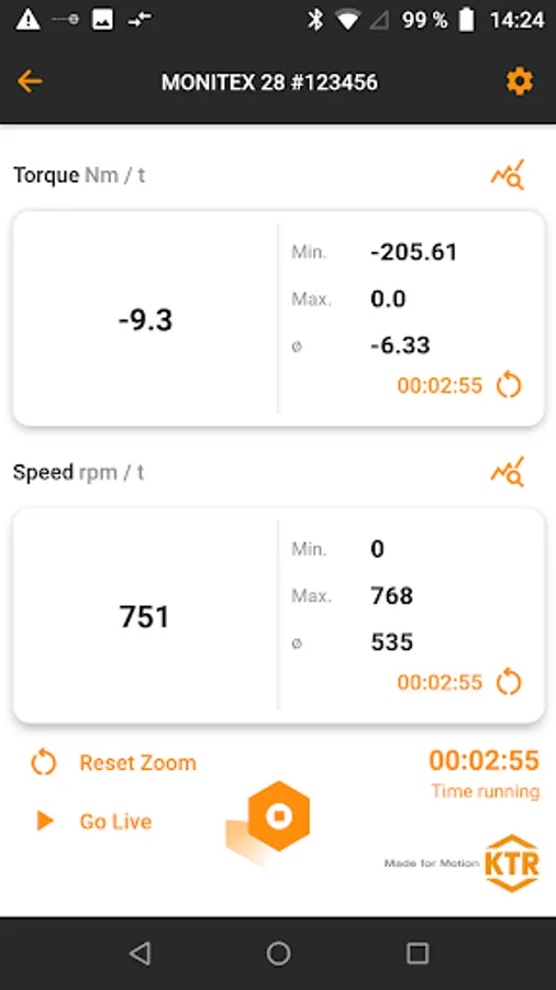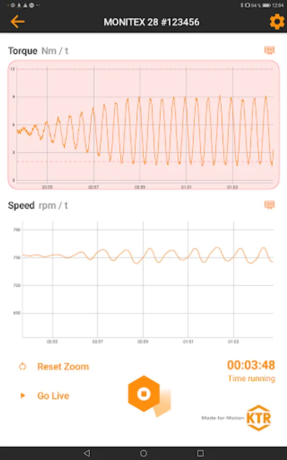 The MONITEX BT app enables you to connect your mobile device to the MONITEX BT torque sensor of KTR via a bluetooth connection. The sensor placed in a coupling hub allows for permanent monitoring of the drive by measuring torque and speed.
