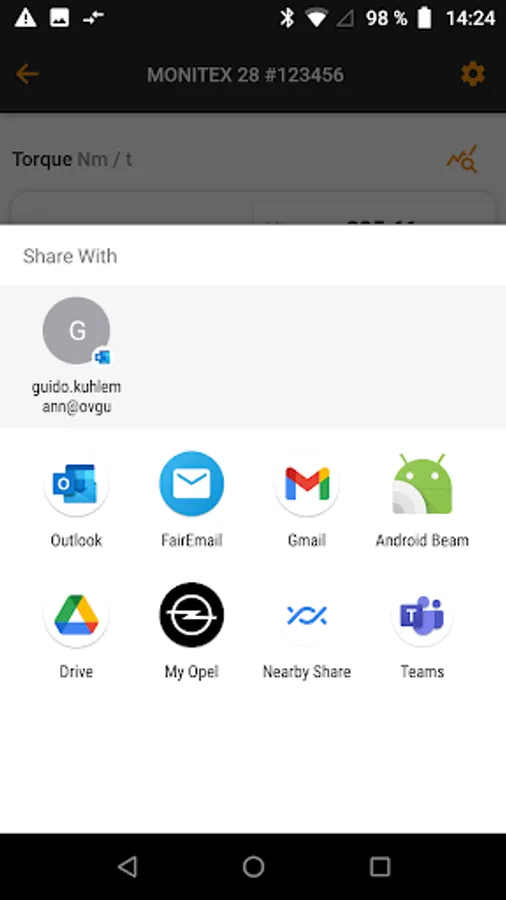 The torque and speed data are automatically logged and can be sent and saved after measuring.