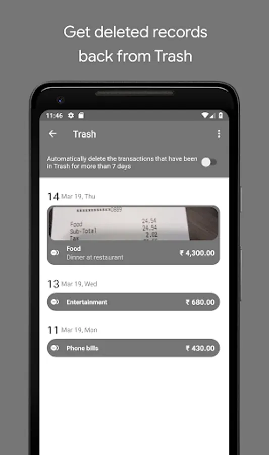 • Automatic Google Drive backups: Monito automatically backs up your data to your Google Drive Account. Restoring data is easy too.