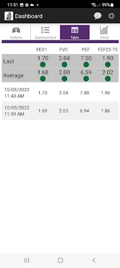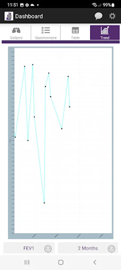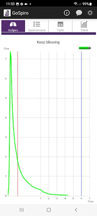 The MTI Legacy App collects full spirometry data in the home from the GoSpiro. The GoSpiro connects wirelessly via Bluetooth to the GoSpiro App.