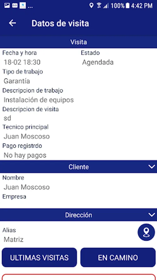 It allows to create visits for technicians and that they fill the reports in the client, avoiding the use of paper and improving communication and management with the client.
