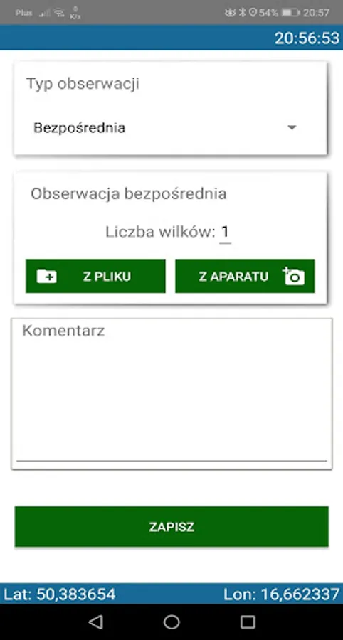 A closed application for monitoring wolf (Canis lupus) in Poland. Application managed by the Association for Biodiversity Promotion "MATECZNIK"