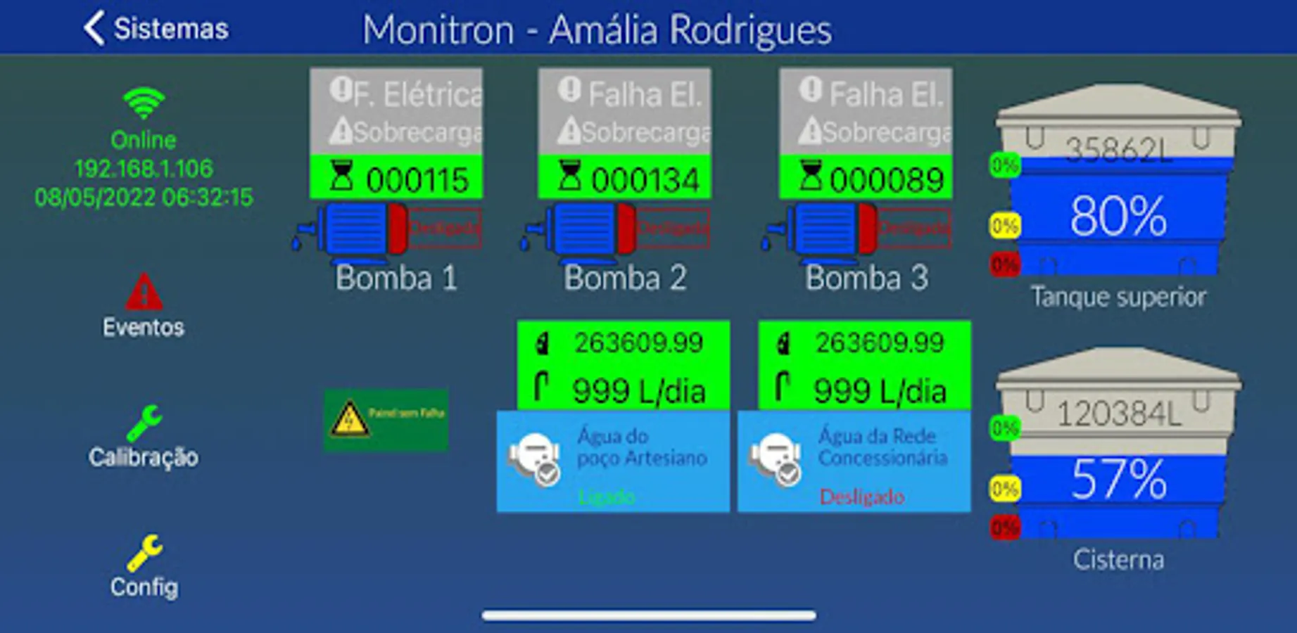 With it it is possible to see the levels of the reservoirs, control pumps and receive notification alarms in case of failures.