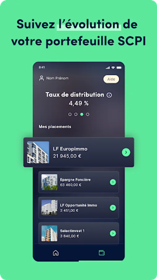 The first version of the Moniwan app, designed for our SCPI investors. Quickly find key information about your real estate investment. Track your savings: