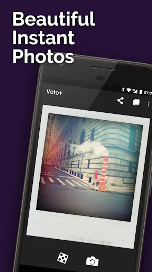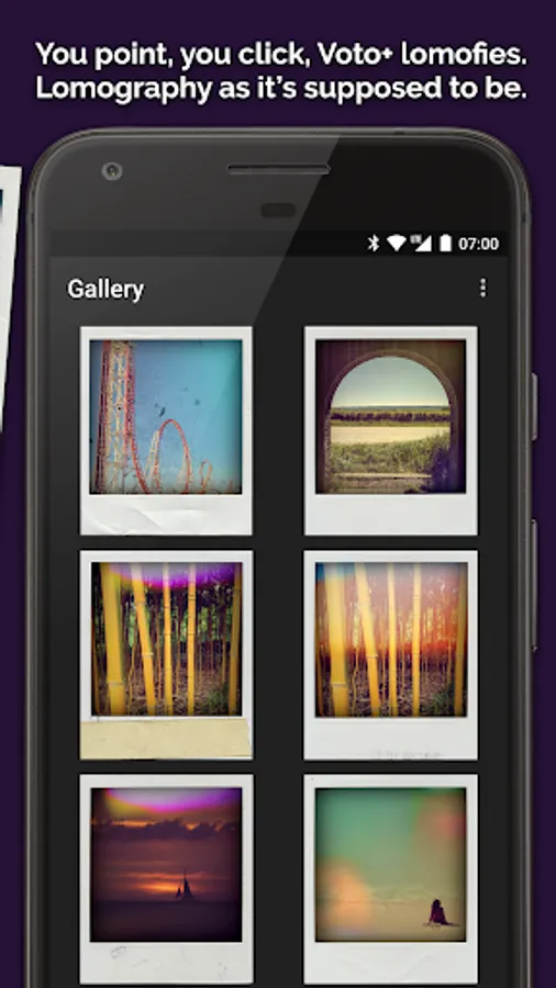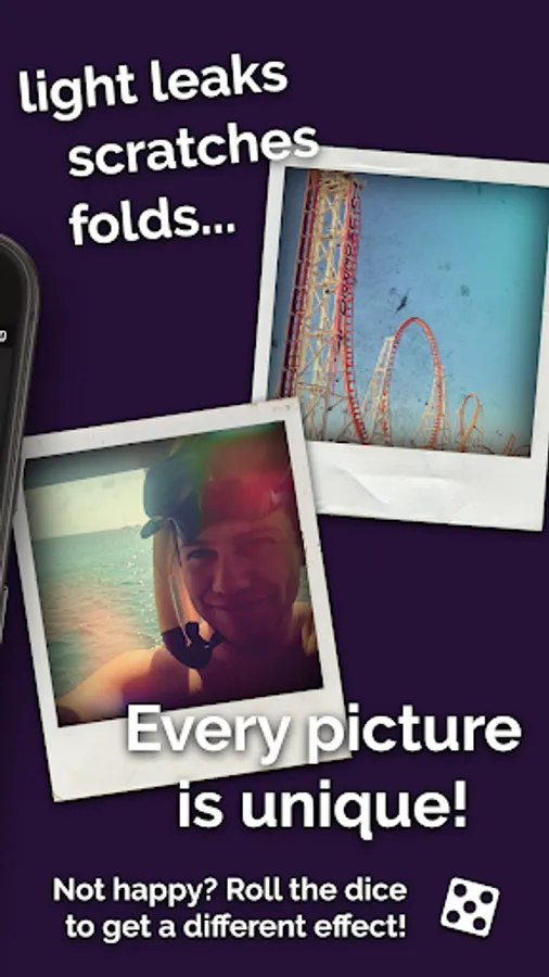 Lomo photo effects as they're supposed to be. Like a real instant toy camera, each picture you take comes out differently. Light leaks, lense flares, noise, spirit orbs - there's no way of knowing what your photo will look like. There are endless possibilities. Each picture is unique.