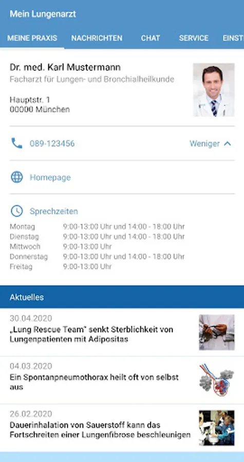 If you have registered with your data, your doctor or health care professional may send you general and personal information. Via the message function you receive messages via push quickly and directly to your phone.
