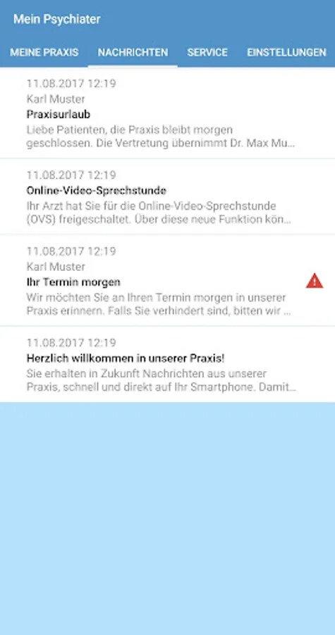 If you have registered with your data, your doctor or health care professional may send you general and personal information. Via the message function you receive messages via push quickly and directly to your phone.