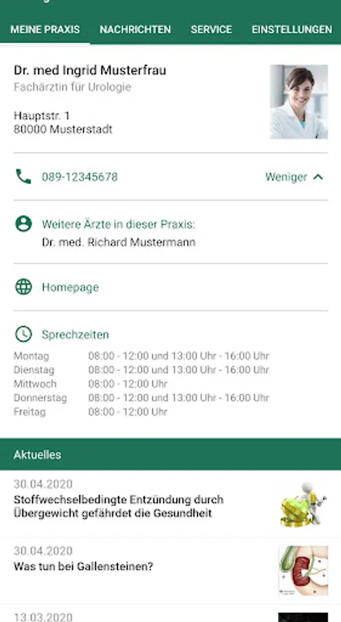 If you have registered with your data, your doctor or health care professional may send you general and personal information. Via the message function you receive messages via push quickly and directly to your phone.