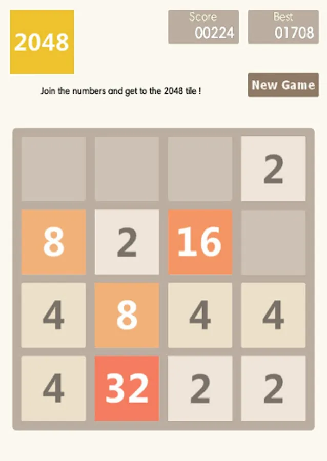 Join the numbers to get the 2048 tile, it sounds easy but it ain't. Swipe to move the tiles. and when two tiles with the same number touch, they merge into one.