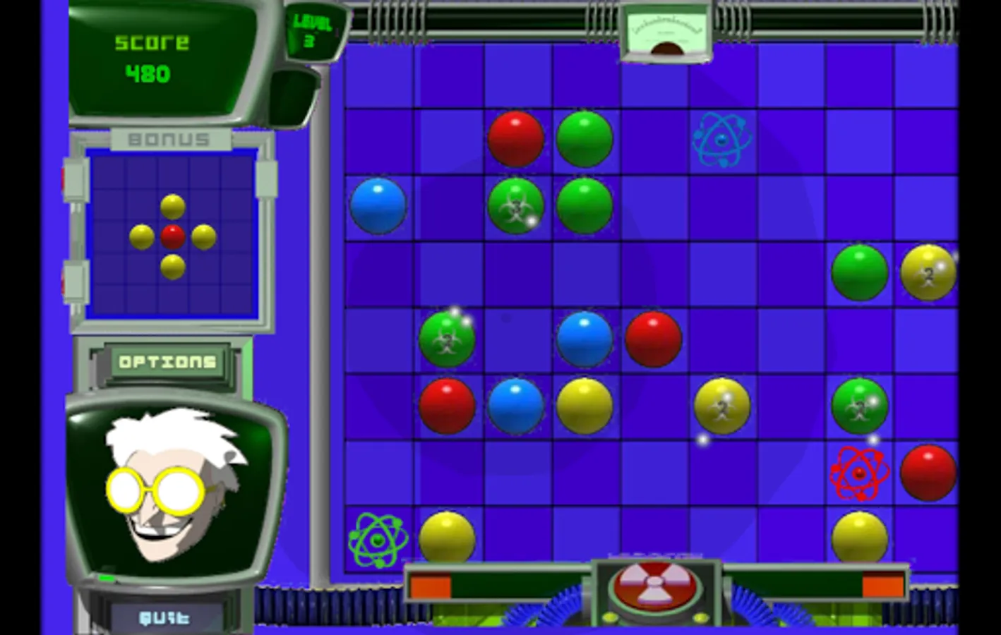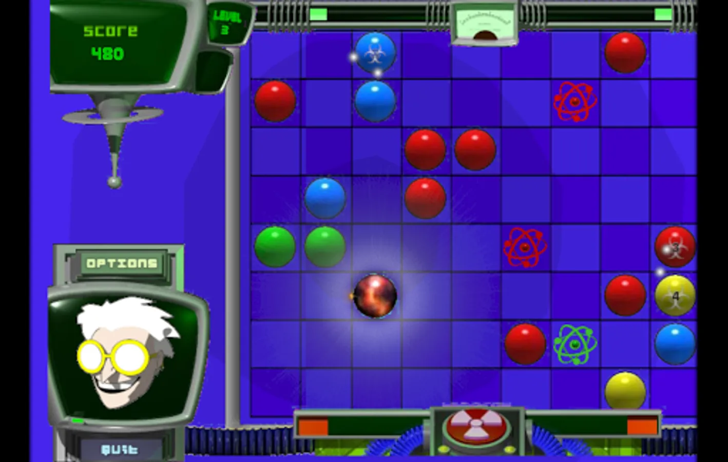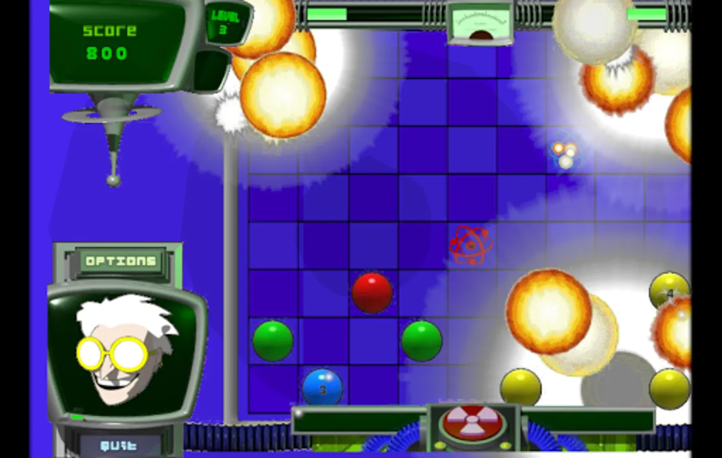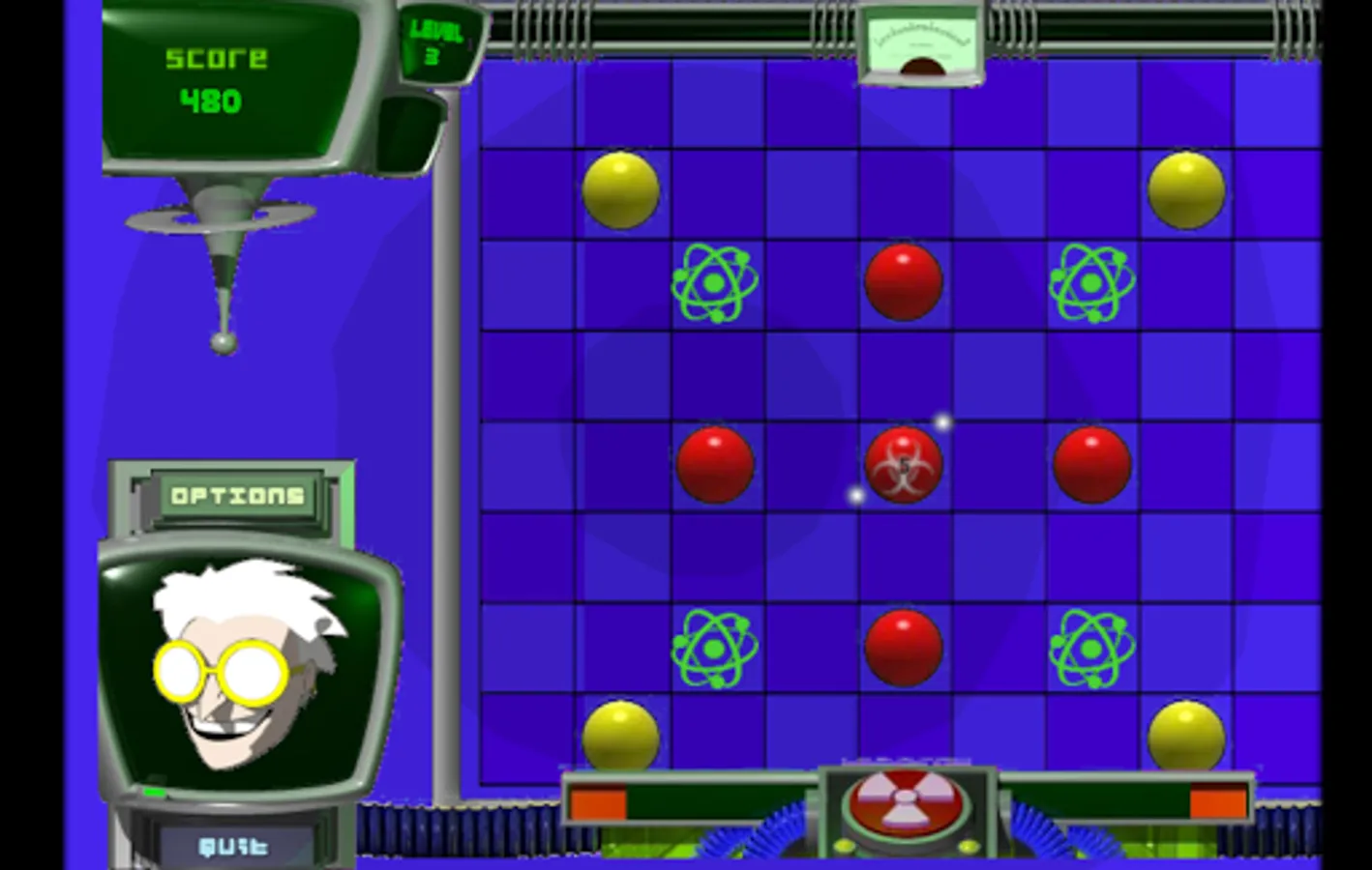 Your game board consists of a grid and in each square there is space for one atom. Each atom has different color, and the target of the game is to create atomic reactions by moving 4 or more atoms together. The more atoms you collect, the greater the reaction. However, new atoms appear on the grid, which may hinder your planned movement. Now the game has a more strategic element, you have to know which atom to move in order to be more efficient. There are two main modes of gameplay, one of which is a turn-based strategic game, in which each move is followed by a reaction. The other is the real-time game, which is fast-paced and new atoms continuously popping up on the grid, so you need to be fast.