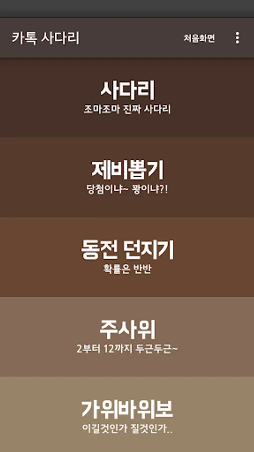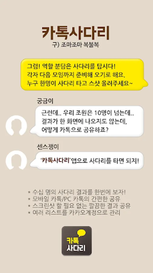 "Katok ladder" is a fun bokbulbok app that allows you to share the results of the ladder up to 100 people to KakaoTalk.