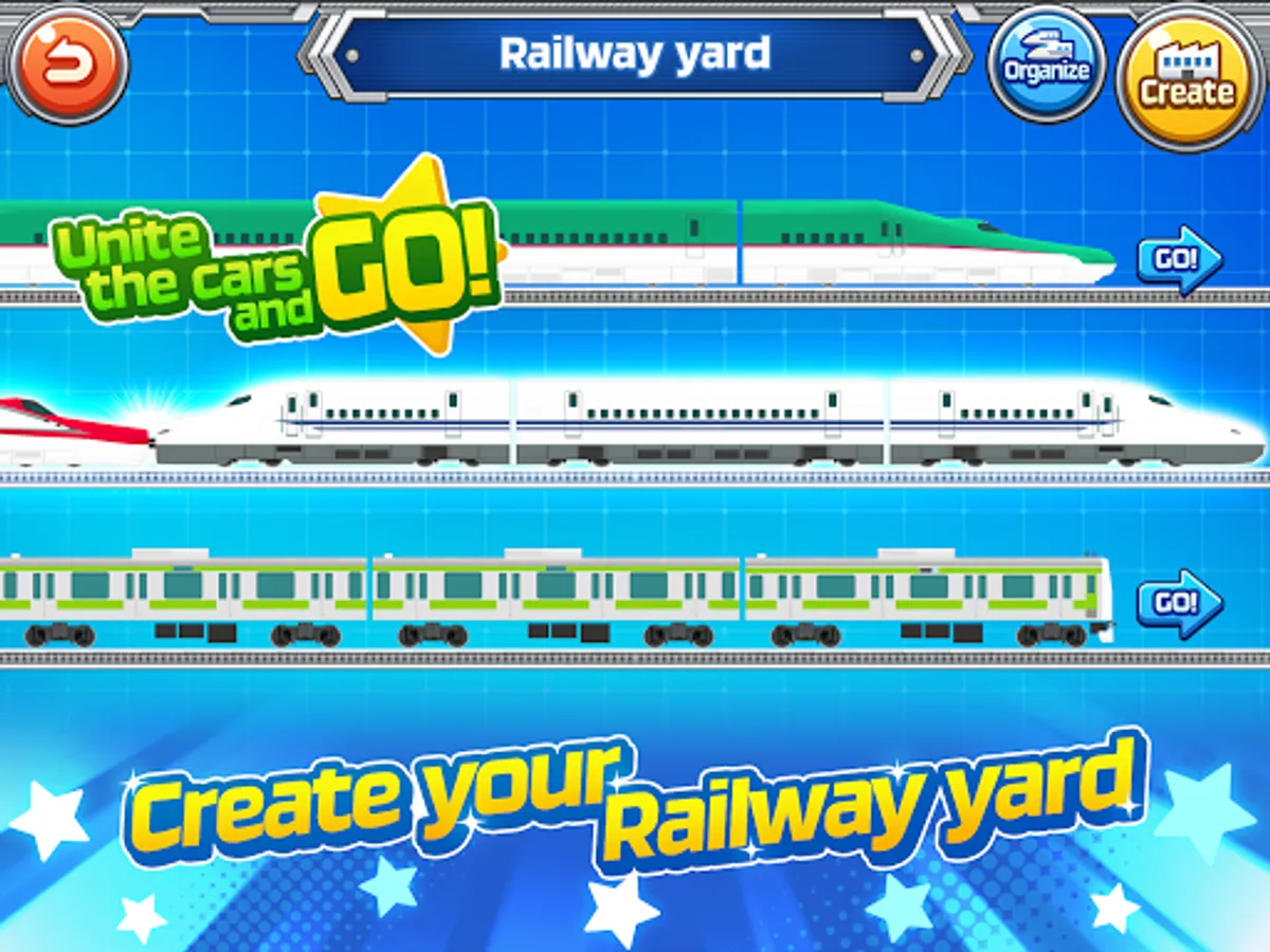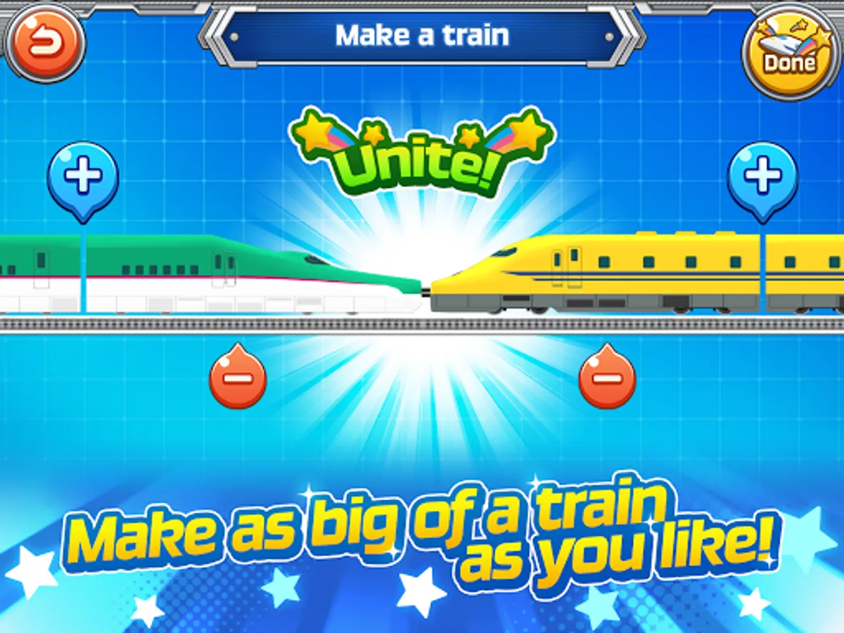 Create your own trains by freely uniting the carriages of bullet trains and regular trains in any way you want!