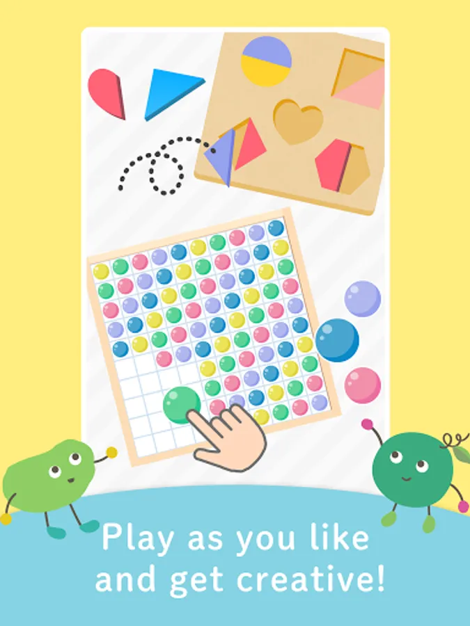 Fit two shapes into each hole. Feels good when it snaps into place. You can keep playing this for a long time.