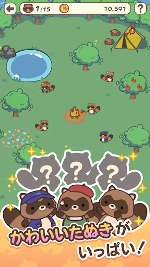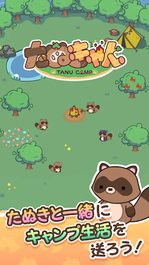 "Tanukyan" is a game where you live a camping life on an island with cute raccoons.