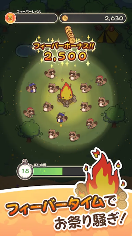 Fever Time is a festival mini-game where raccoon dogs start dancing around a campfire.