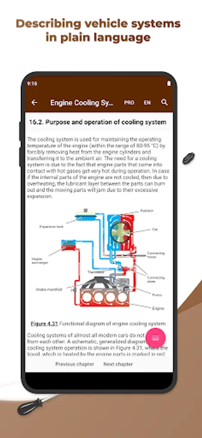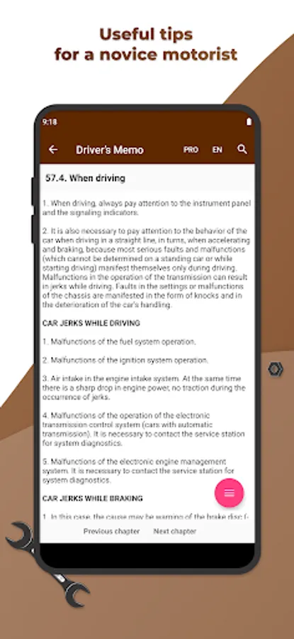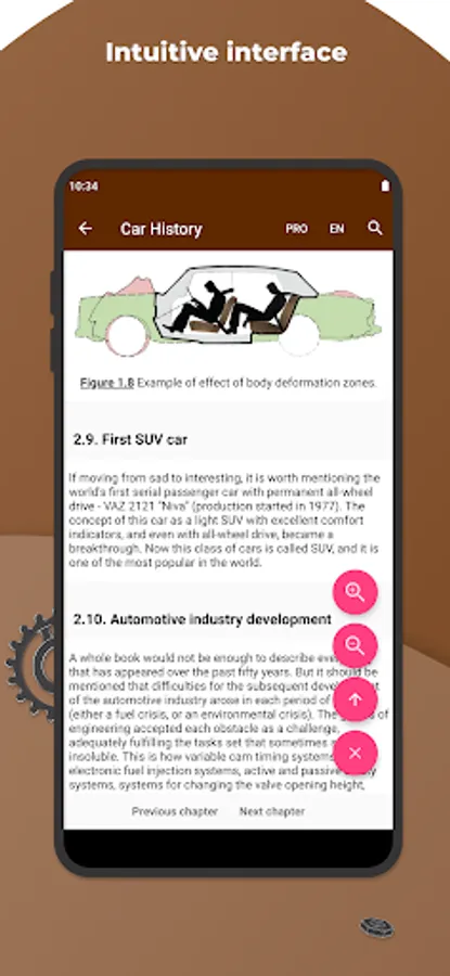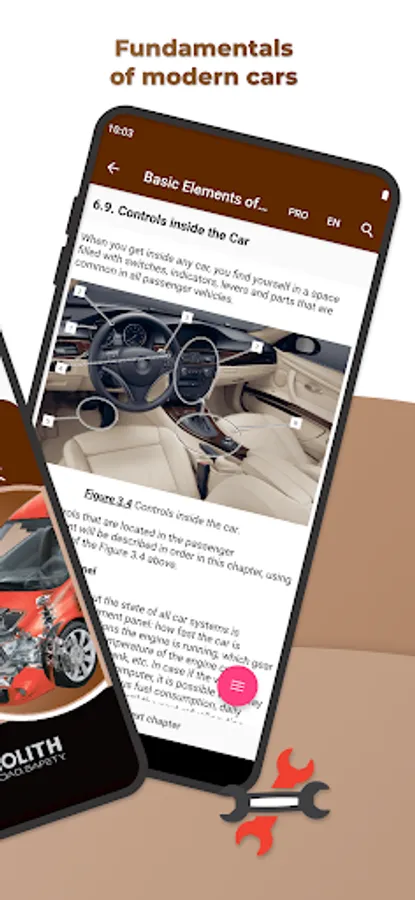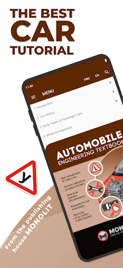 Getting started on this application, we set a goal to present a rather difficult theoretical course on the automobile engineering in the most accessible form. Basic knowledge of vehicles' structure will supply a novice driver with confidence in the fact that he will be able to control the situation of any breakdown, predict the amount of necessary work at the service station and just can competently exploit its vehicle.