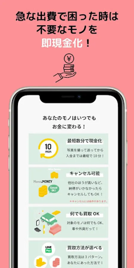 There is no cash due to sudden sudden expenses ... In such a case, just take a picture of the item you want to sell on your smartphone and upload it, and it will be assessed on the spot, and you will have cash in your hand in a minimum of 10 minutes.