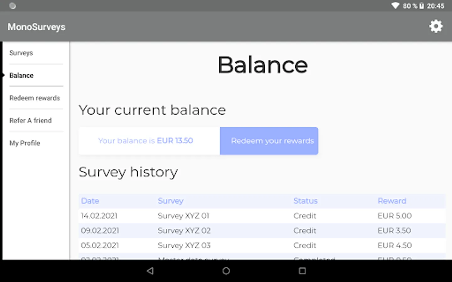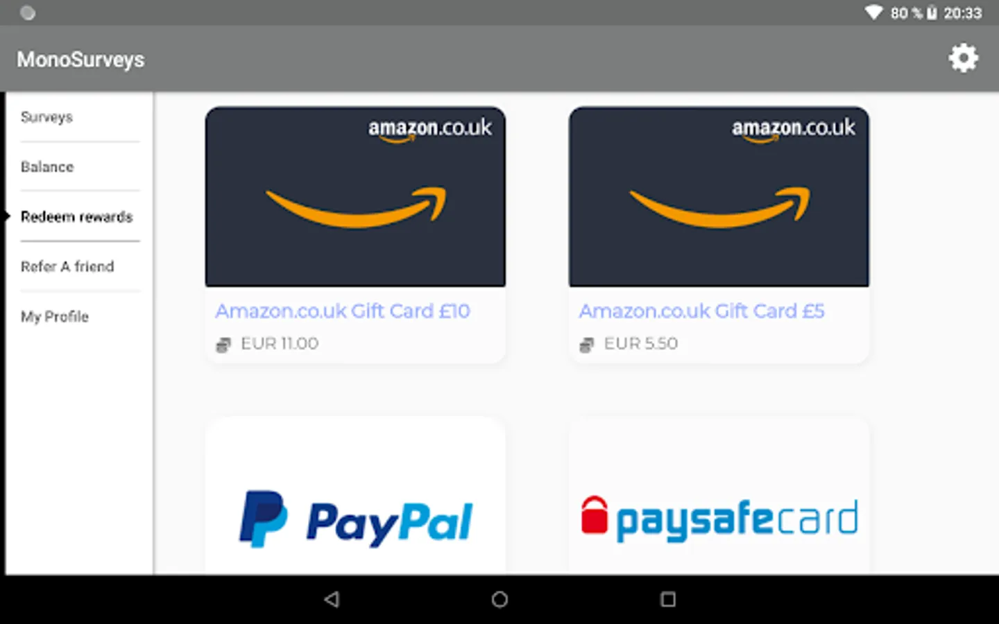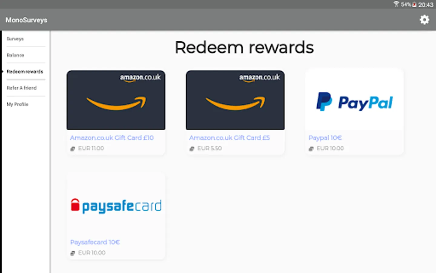 Answer surveys wherever and whenever! With MonoSurveys App you can answer surveys, check your balance and exchange your rewards to gift cards. Surveys are a fun and easy way to get some extra money.