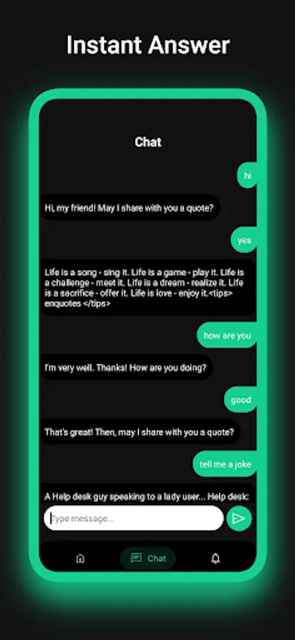 Introducing the newest and smartest way to chat - a mobile app powered by the advanced GPT-3 & GPT-3.5 & GPT-4 technology. This app lets you have engaging conversations with an AI chatbot that can provide you with insightful and accurate answers to all your questions. Whether you want to know more about a particular topic, need advice on a situation, or just want to have a casual conversation, this app has got you covered.