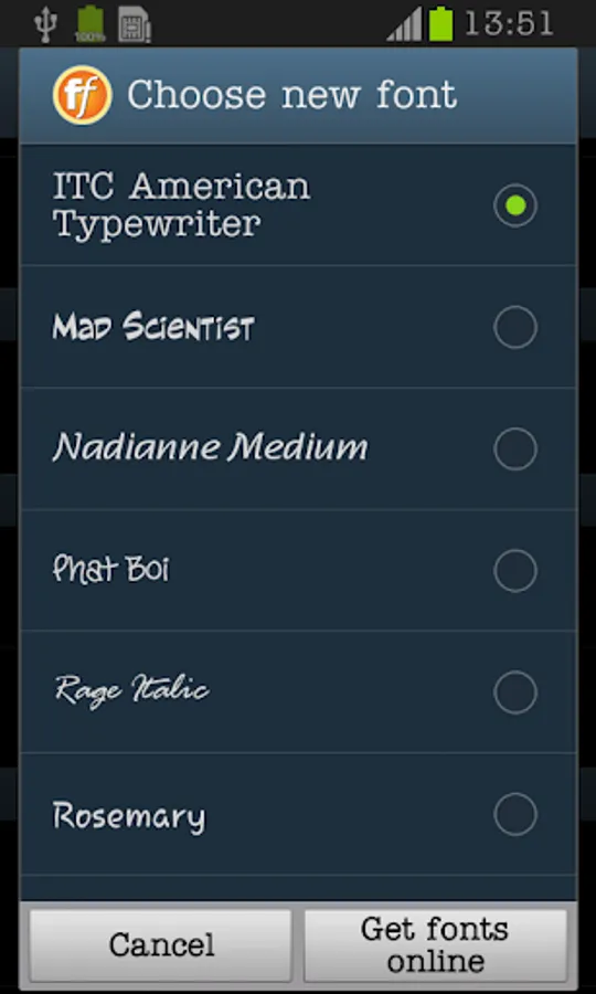 Go to Setting->Display, check if you see "Font syle" in the menu (FF icon in the font list).