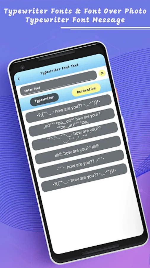 This App have various Typewriter Fonts & Font Over Photo - Typewriter Message styles, designes and filters with instant preview so you can take a look how exactly photo will look.