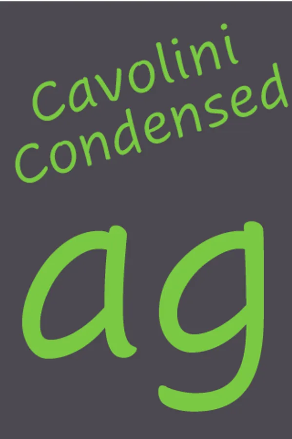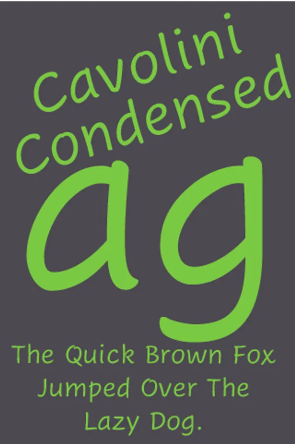 Cavolini Condensed has all the charm of Cavolini – and is a little more space efficient. Screen real estate a little cramped? This is the font for you.