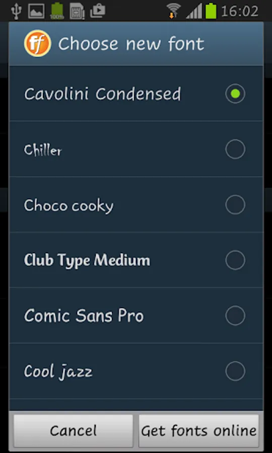 Go to Setting->Display, check if you see "Font syle" in the menu (FF icon in the font list).
