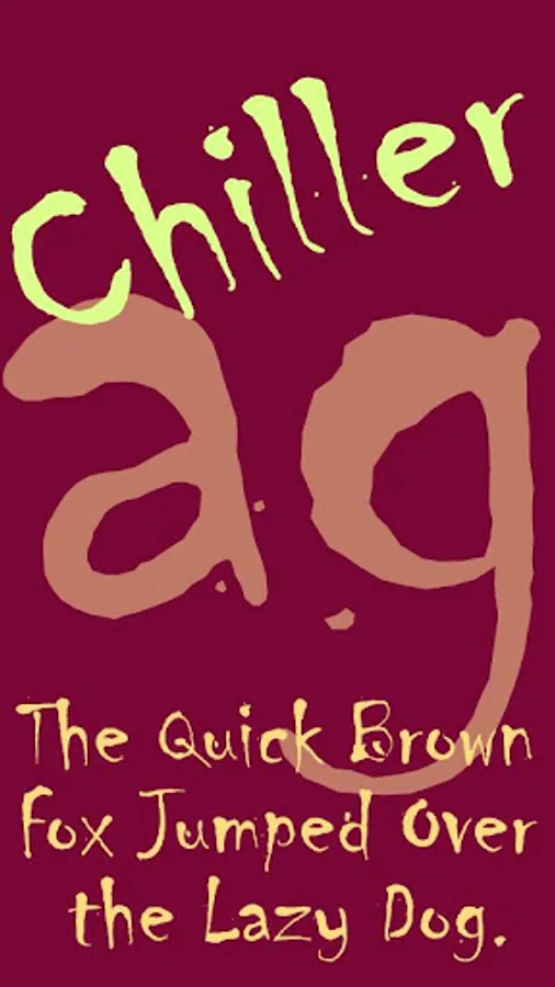 Chiller™, with its alarming, undisciplined presence, is on the cutting edge. The font is awash with shocking splatters that give it a dangerous, reckless look.