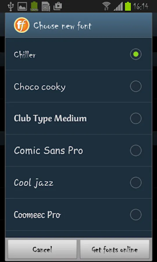FlipFont ™ changes the user interface font on your phone.