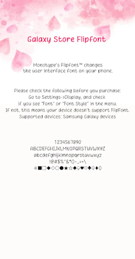 Monotype’s Flipfont™ changes the user interface font on your phone. After installing this app, go to 'Settings > Display > Font(Font Style)' menu to change the font.