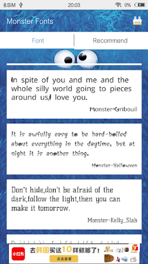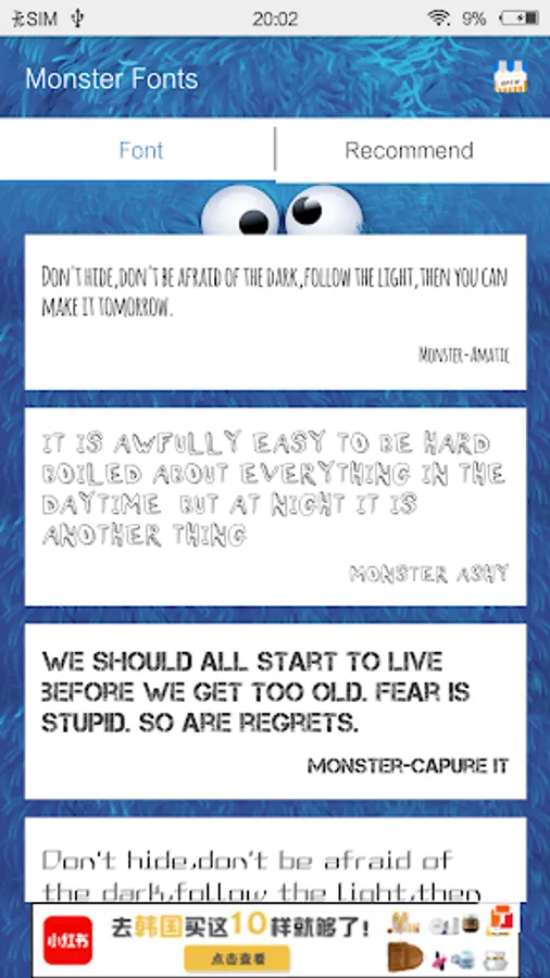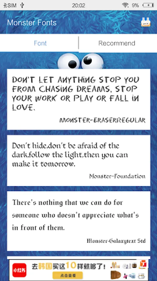Monster Fonts pack is much easier for you to customize your phone fonts for free. It will make your phone amazing and unique among your friends.Please enjoy it and it will provide you a wonderful experience!