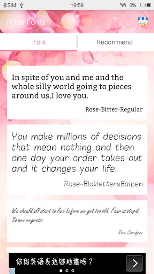 Rose Fonts is a small font pack that provides beautiful style written typefaces for Android.It will be easy、fast for your phone to change fonts for free and it is compatible with the font programmer on your phone.