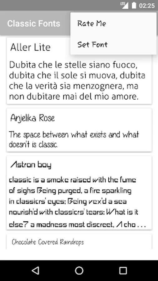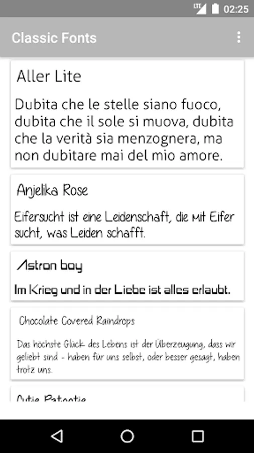 Classic Fonts is a free font package with most liked fonts around the world. This Font Application is to be installed in your android devices. Enjoy this classic font pack.